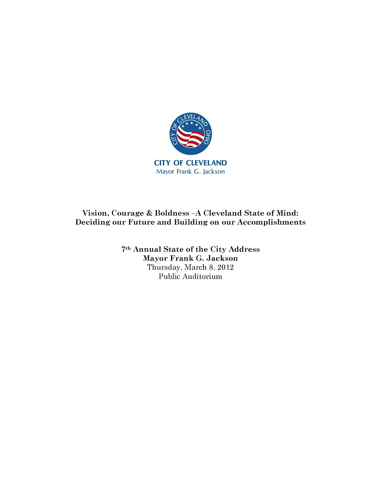 (From Mayor Frank G. Jackson’s State of the City address on March 8, 2012)